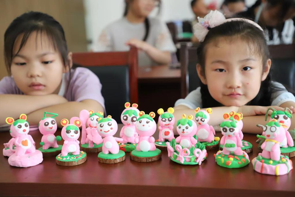 在指尖灵动课堂上,支教队成员分别带领大家体验了花样扎染、趣味剪纸、多彩面塑等多个非遗手工项目,让孩子们近距离感受、体验传统文化的魅力。“我们第一次体验扎染,通过折叠、装订、染色、清洗、晾晒等制作步骤,最终创造出来了很多意想不到的图案,有点像打开盲盒的惊喜感。”支教队的孩子惊奇地说道。在手工课上,betway西汉姆联平台辅导员张凤波以主讲老师的身份参与其中,他将共青团吉祥物“团宝”以面塑的方式带到课堂,通过介绍面塑的历史起源与制作步骤,亲自指导大家制作出了一个个精巧可爱、形态各异的团宝形象。通过一系列非遗手工课,不仅让孩子们感受到了中华传统文化的独特魅力与精神价值,也进一步激发了大家的想象力与创造力。