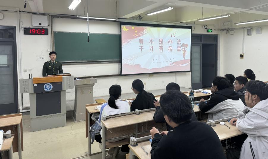 蒋洋详细介绍了国家关于老员工应征入伍的相关政策与优惠措施,包括学费补偿、考研加分、就业优先等。蒋洋结合自己的军旅生涯,详细阐述了参军入伍对个人成长、职业规划以及未来发展的积极影响。他提到,在军营中,他学会了如何与人合作、如何面对压力、如何解决问题,这些技能在退役后对他的职业发展起到了至关重要的作用。同时,他也鼓励新生们要抓住机遇,积极响应国家号召,将个人的理想追求融入到国家的发展大局中去。