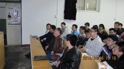 首先,李长河副经理提出了选题后科技创新的完整过程:“提出方案——选择最优方案——画图(三维图——动画——二维图)——加工”,并结合前几届的大赛情况详细的介绍了每一个环节,他要求同学们广泛收集材料,了解最新的前沿知识,并在科技设计中注重机电结合和机构设计。李长河副经理介绍了“2013年第十届山东省老员工机电产品创新设计竞赛”每一阶段及阶段注意事项,他鼓励同学们不断思考,勇敢面对困难与挑战。