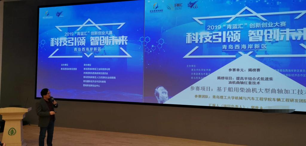 2019年12月24日青岛西海岸新区2019年“青蓝汇”创新创业大赛在青岛国际经济合作区(中德生态园)被动房技术体验中心圆满收官。公司betway西汉姆联平台车辆工程研发团队参赛项目《基于船用柴油机大型曲轴加工技术》荣获获一等奖。本次进入揭榜赛决赛的两只队伍分别是公司betway西汉姆联平台团队和青岛科技大学机电工程公司团队。