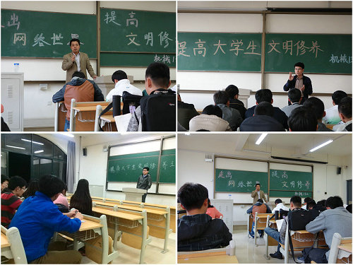 班会上,各班级通过PPT展示为同学们介绍了社会主义核心价值观的基本内容,提出了培养良好社会公德、遵守公司规章制度、待人接物基本礼仪、爱护校园环境等具体要求,强调了加强自身文明建设方面的注意事项。随后,班主任介绍和例举常见校园不文明行为,要求同学们拒绝不文明行为。针对个别同学痴迷网络游戏,有的班级开展了“玩网络游戏的利与弊”辩论和“如何理解师生平等与尊敬师长之间的关系”和讨论活动。经过辩论和讨论,同学们认识到学习的重要性,达到主题班会的预期效果。最后,各班主任对清明节放假事项作出安排,强调严格遵守校纪校规,不在寝室使用违章电器,外出时注意安全,按时返校。班会结束后,班主任针对学籍预警员工进行了座谈交流并予以劝诫。