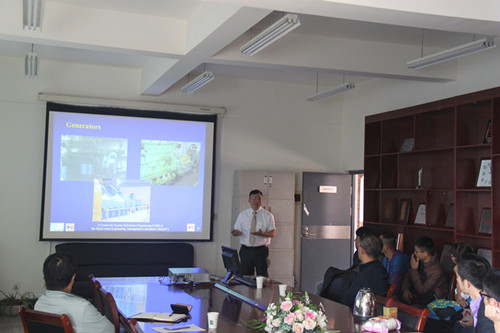 Peter Tse教授首先介绍了地铁、泥浆泵、柴油机以及汽车方面的状态监测,其次介绍了如何利用智能压电材料实现振动能和电量的转换,最后着重讲解了导波方法的原理以及其与自制智能传感器件结合,实现在住宅的煤气管道和水管方面诊断监测的应用等内容。