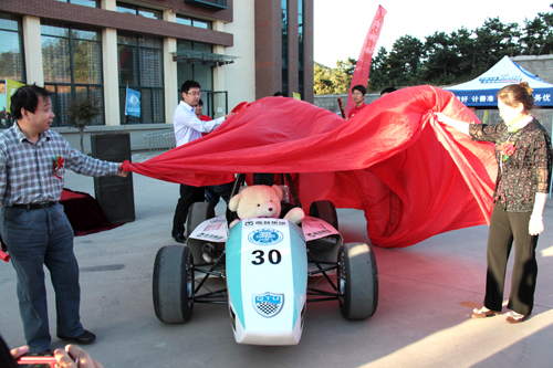 青特车队指导老师邹旭东、队长何建勇分别发言。仪式后,车队同学们进行了赛车动态展示及静态项目现场汇报。