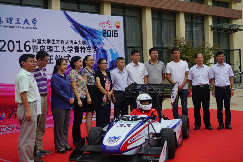 据介绍,本次新车产品QTU-06赛车首次应用碳纤维车身抽真空工艺,将赛车重量降低到200 kg以下。它使用亚翔450单缸自然吸气发动机,整机质量为33kg。同时搭配宽带氧传感器,实现闭环反馈控制,提升赛车动力性。QTU-06进气限流系统采用ANSYS fluent分析优化,进气流畅。整个传动系统在基于可靠性的基础上,主要从提高动力性方面考虑,主减速比调整为3.36。在悬架系统方面,悬架设计致力于改善操控性能,兼顾稳定性。前后悬架采用推杆设计,均加入防倾杆。采用参数一致性分组方法,利用Adams对悬架、整车进行动力学仿真优化,保证车轮在±25mm范围内跳动。对于车载数据采集系统,使用了CAN总线技术与ECU实现实时通讯,发动机转速、车速、档位等参数均可自由地在仪表板显示,快速且精准。QTU-06赛车人机工程的设计采用SAE标准,以基准点设计选取驾驶舱尺寸参数、踏板、方向盘距离尺寸,设定车手驾驶姿态模型,优化人机设计。多功能方向盘将赛车挡位、转速、水温、速度集成在一块液晶屏上显示,缩短了车手获取信息的时间。