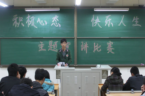 为活跃校园文化氛围,传播健康生活态度,11月23日晚,“阳光雨露”心理协会在嘉陵江路校区举办了以“积极心态,快乐人生”为主题的演讲比赛。