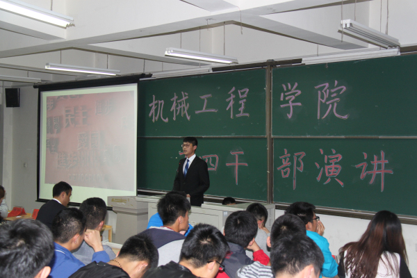 5月4日晚,由机械公司团总支和员工会联合举办的五四干部演讲比赛于嘉陵江路校区主教学楼B225举办。出席本次演讲比赛的评委有机械公司团总支书记贺治成,辅导员李淑云、张翠芳,吕滨江老师,王飞老师等。