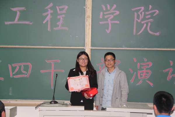 本次的参赛选手为机械公司各班级的班长、团支书,比赛采用抽签方式决定出场顺序,由评委老师评出前三名,大众评选选出个人风采奖。伴随着同学们的掌声和欢呼声,比赛正式开始,参赛选手们纷纷展现出自己的“拿手绝技”,来自机械144班的申文涛的《这一年,我们正青春》慷慨激昂,洪亮的嗓音,熟练的台风让现场的观众拍手叫好,而机械133班孙婕演讲的《奋斗的青春最美丽》则以其细腻不失坚韧的口吻,柔软不失激情的嗓音打动了观众,征服了评委。比赛结束后,贺治成老师发表了讲话,他对此次参赛选手们的表现给予了高度的赞扬,并提醒同学们“不要以青春的名义,致我们即将逝去的青春,要珍惜现在”。最后主持人宣布比赛结果,机械133团支书孙捷摘得冠军,亚军则由机械144班长申文涛获得,测控132团支书葛文琪获得季军,机械135班长李震获得个人风采奖。