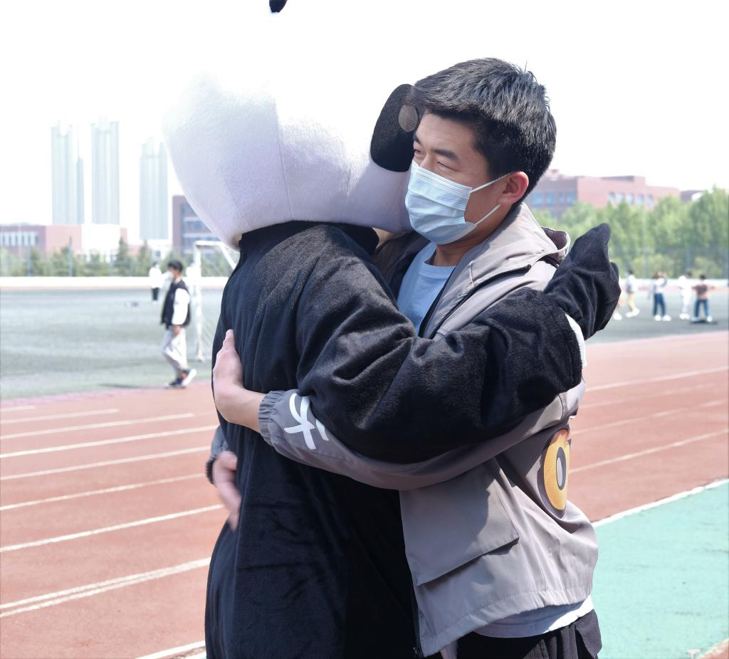 “拥抱组”志愿者身着卡通人物服装为路过的老师和同学们送去“爱的抱抱”,送上鲜花、明信片等小礼物,通过拥抱、合影、握手等方式,传递彼此间的关爱与温暖。“皮卡丘好可爱,谢谢你的拥抱”,“皮卡丘你该减肥啦”,操场上欢声笑语不断,同学们纷纷与“皮卡丘”打卡拥抱。“听到大家爽朗的笑声,心情很治愈,原来快乐是可以传递的”心协成员王政分享道。