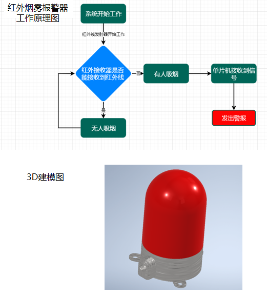 员工党员以实际行动拉起禁烟旗帜,以自身所长建设清新校园。机械182赵子涵带领员工党员结合所学专业及研究课题,设计制作红外线烟雾报警器,目前已完成红外线报警器的三维建模。常用的离子型烟雾探测器采用电离场监测烟雾,该类设计灵敏度过高,在空气中有其它颗粒时容易产生误报现象。红外线发射器及接收器的工作方式打破了离子烟雾报警器局限性,完善了烟雾报警器工作机制当空气中有烟雾存在时,红外线接收器接收到的光线变少,诱发电路电流发生改变,触发LED报警指示灯,并播放禁止吸烟宣传口号,以此劝诫吸烟人员停止吸烟。在无烟日来临之际,员工党员利用课余时间认真准备、刻苦钻研,以专业所长支持禁烟行动,充分展现出机车学子勇于创新、挑战自我和敢于担当的良好精神面貌。