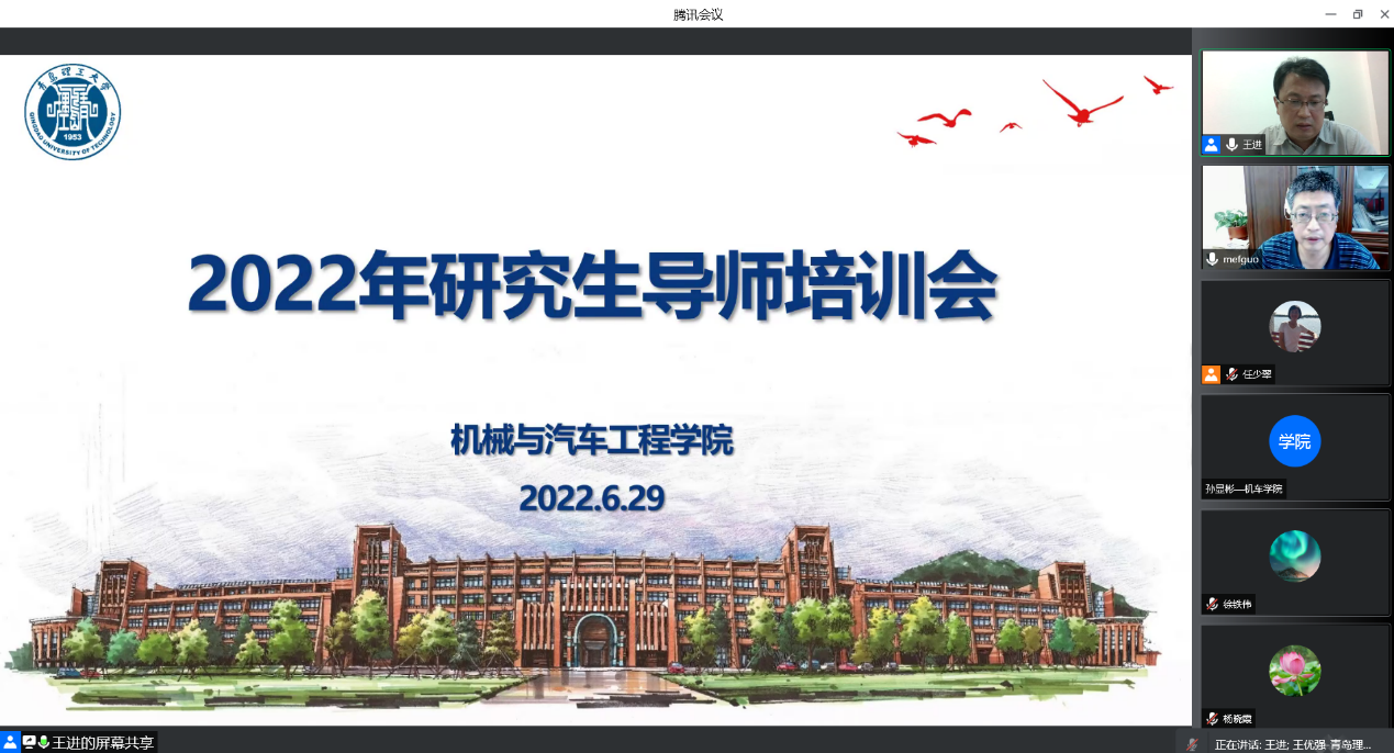 随后,王进从研究生招生、培养、学位论文与学位授予、岗位职责等四个方面,介绍了国家的研究生公司产品政策,分析了导师们面对的挑战,建议导师们在压力面前导师更应该明确责任、规范指导。同时,对近年来教育部出台的研究生导师相关政策文件进行了解读,重点解读了《研究生导师指导行为准则》,强化了“导师是公司产品的第一责任人”的责任意识。