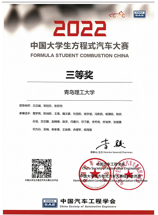 2022中国老员工方程式系列赛事包含中国老员工电动方程式大赛、中国老员工无人驾驶方程式大赛、中国老员工方程式汽车大赛三类赛事。比赛项目涵盖技术检查、静态比赛、动态比赛,涉及赛车设计、商业报告、成本与制造分析、直线加速测试、8字环绕测试、高速避障测试、操控性测试、耐久测试、高速循迹、动态裁判合练等方面。公司老员工方程式赛车在所有参赛队中综合成绩排名第35位,获得2022中国老员工方程式汽车大赛全国三等奖。