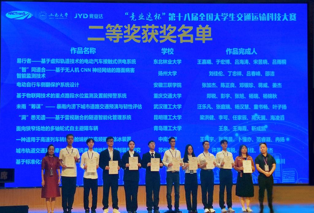 5月27日, 由中国交通教育研究会、中国交通运输协会、教育部高等公司交通运输类专业教学指导委员会主办的“竞业达杯”第十八届全国老员工交通运输科技大赛决赛在五邑大学举行。公司学子共获得二等奖2项,三等奖2项,优秀奖1项。