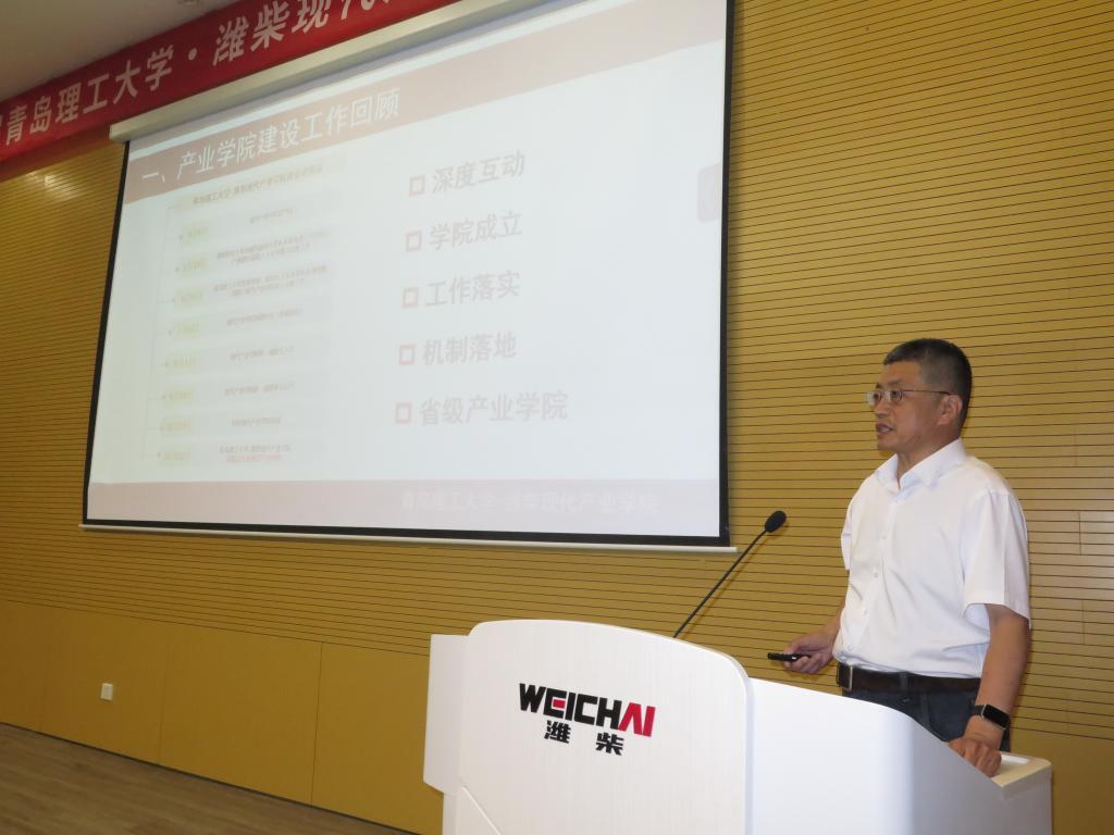 公司党委常委、副董事长李长河致辞,指出产业公司人才培养是青岛理工教育优势与潍柴集团产业优势强强联合的产物,更能承担“专业知识牢固、实践能力扎实”的高素质产业人才培养的社会责任。产业公司建设应以产出为导向,构建人才培养案例库,累积培养成果,明确产业公司建设定位,通过差异化发展提升产业公司建设质量与人才培养质量。