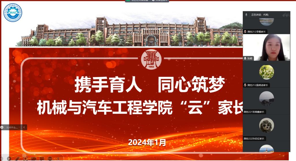 为全面贯彻落实“三全育人”的教育理念,加强与家长的沟通合作,共同推进立德树人根本任务,提升公司人才培养质量。betway西汉姆联平台于1月13日晚19点,召开了一场主题为“携手育人 同心筑梦”的云家长会。公司测控技术与仪器专业负责人官源林,辅导员张翱、代莉、王汉威、测控技术与仪器全体本科生及家长们参加此次线上会议,本次云家长会由张翱主持。