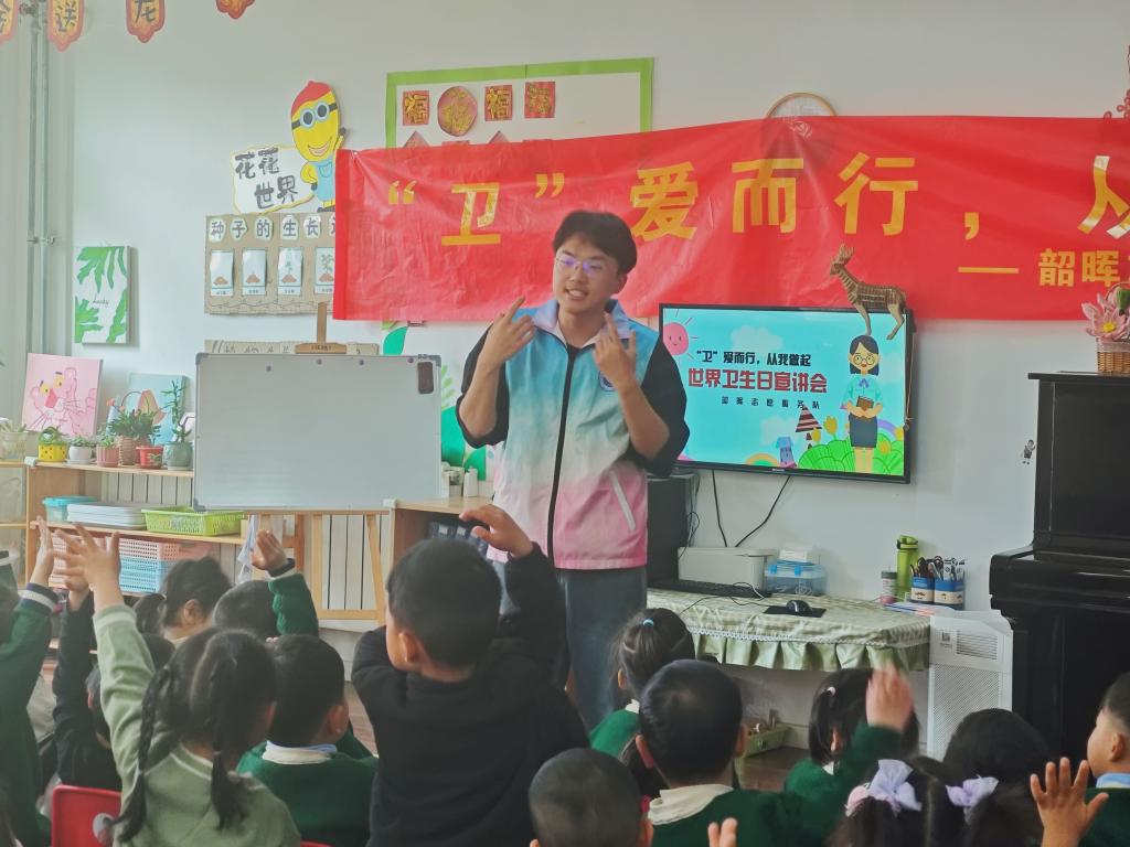 4月7日是第76个世界卫生日,betway西汉姆联平台韶晖志愿队深入京华合木幼儿园开展“‘卫’爱而行,从我做起”主题宣讲活动,倡导践行健康生活方式,为全面推进健康中国建设贡献青春力量。