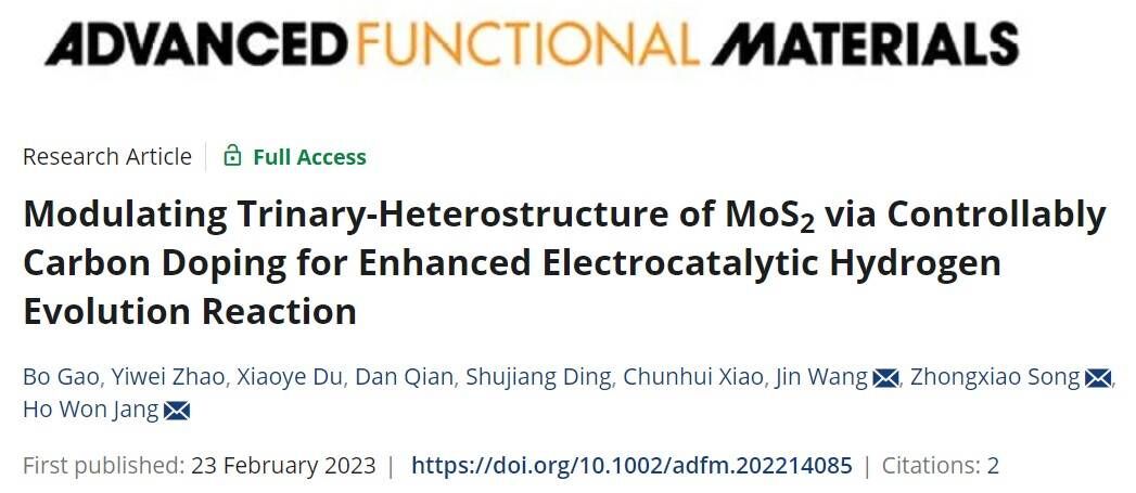 理解二维过渡金属二卤化物(2D-TMD)从半导体(2H)相到金属(1T,1T′)相的相变过程为析氢催化的发展提供了方向。到目前为止,相工程方法作为储能和催化领域电子和电极器件新型低成本纳米材料开发的实用途径被深入研究。然而,在电催化过程中作为关键活性中心的2H/1T、2H/1T′或1T/1T′之间的异质结构却常常被忽视。针对此问题,betway西汉姆联平台王进教授,首尔大学Ho Won Jang教授和西安交通大学宋忠孝教授等通过碳掺杂MoS2,并结合密度泛函理论计算阐述MoS2相转变以及析氢反应机制。研究成果以《Modulating Trinary‐Heterostructure of MoS2 via Controllably Carbon Doping for Enhanced Electrocatalytic Hydrogen Evolution Reaction》为题在《Advanced Functional Materials》发表。