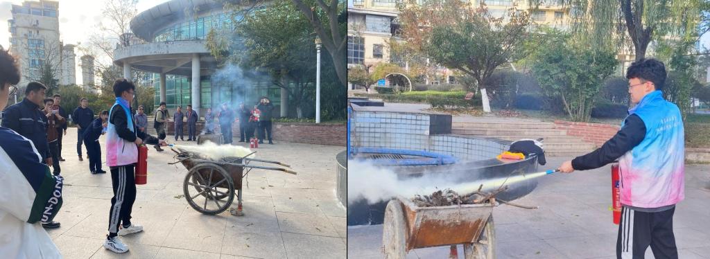 消防灭火接龙,安全技能有我。志愿者来到小区广场,现场学习灭火器的使用。消防专员为员工讲解灭火器的使用,熟记“提、拔、握、压”四字要诀。体验现场,志愿者分成两个队伍,采取接龙灭火趣味对抗的模式提升志愿者掌握技能的方式和应急能力。队员熟练地按照演练学习的正确方法操作灭火器,对较大固体物的火势较大根部扑灭的形式,对纸张、衣物等较轻可燃物,在确保安全的情况下采取扫射的形式进行扑灭。各团队展现出良好的团队协作能力,顺利完成灭火任务。