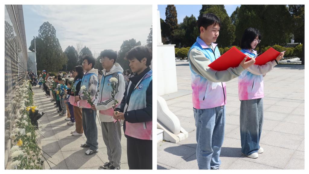 历史“活”起来,沉浸式教育触动心灵。活动创新采用“祭奠+宣讲+实践”三位一体模式,以“星火燎原”“浴血抗战”“黎明前夜”“薪火相传”等主题串联红色历史。宣讲团成员结合史料与实物,生动讲述本土革命故事,让历史不再是书本上的文字,而是可触可感的鲜活记忆。纪念碑前,betway西汉姆联平台学子以《永不褪色的守望》的朗诵叩击人心。青老两代宣讲者共同立下誓言:“做一粒火种,让信仰照亮每个角落!”老员工与小员工共同向革命烈士献上菊花,在春风中舒展成朵朵未寄出的思念,让抽象的历史化为指尖的温度。
