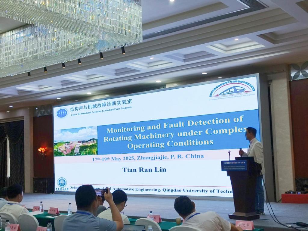 报告以“Monitoring and Fault Detection of Rotating Machinery under Complex Operating Conditions-复杂运行条件下旋转机械的监测与故障检测”为题,林教授系统阐述了其带领的科研团队在旋转机械故障诊断领域开展的一些创新性研究及成果。报告指出,在工业4.0推动制造业数字化、智能化转型背景下,先进制造及高端装备如轨道交通、航空航天、海洋装备等前沿领域的机械装备越来越复杂、智能化,其核心传动部件(如齿轮、轴承)由于长期受到复杂载荷、恶劣环境因素影响,易因机械磨损、疲劳引发渐进式损伤或突发故障。且由于高端装备大型化、智能化特点,机械设备结构复杂、零部件多,特征信号分量多且相互耦合,给在线监测与故障诊断带来巨大挑战。针对这一挑战,林教授与所在团队提出了多个适用于变工况及强噪声环境下的旋转机械信号处理与故障诊断技术,并在报告中通过实际应用案例详细阐释了如何通过所提技术分离提取现场监测数据中包含的多源信息特征,并准确判断其相关的故障信号源。同时强调在线监测与故障诊断技术在保障关键旋转机械可靠性与安全运行中的核心价值,以及在未来工业应用中的发展潜力,报告引发与会专家热烈讨论。