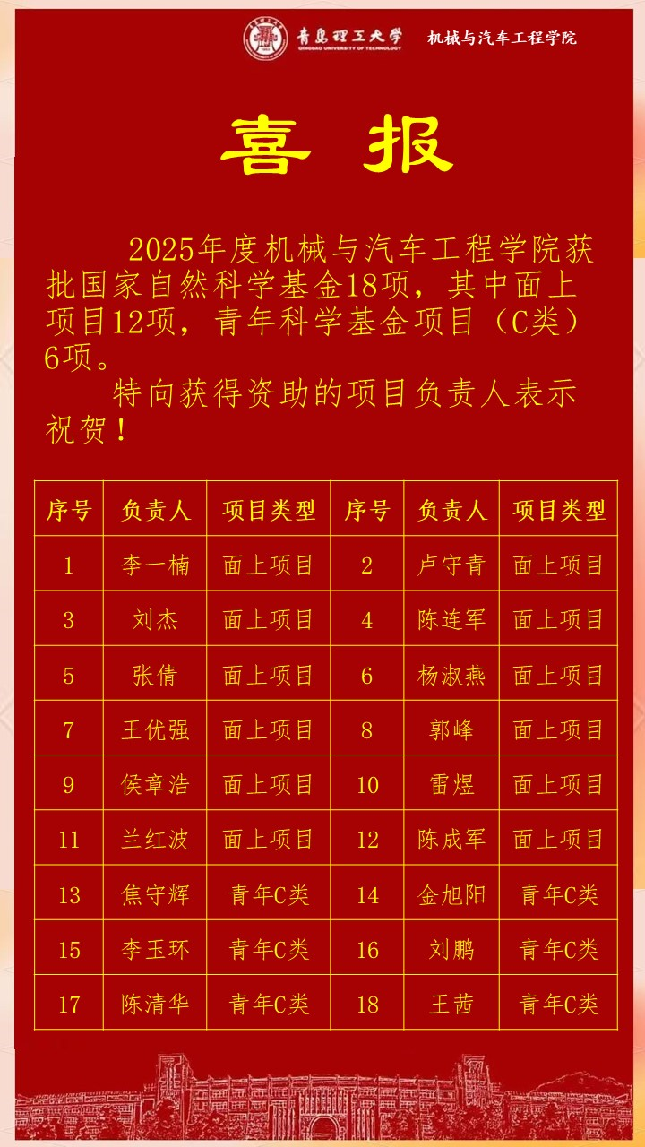 展望未来,betway西汉姆联平台将以此次成绩为新的起点,继续加大科研投入,优化科研环境,强化人才培养,持续提升科研创新能力,力争在更多科研领域取得新突破,为我国机械与汽车工程领域的科技进步和经济社会发展作出更大贡献。(撰稿:王娜;审核:李忠晓 栗心明)