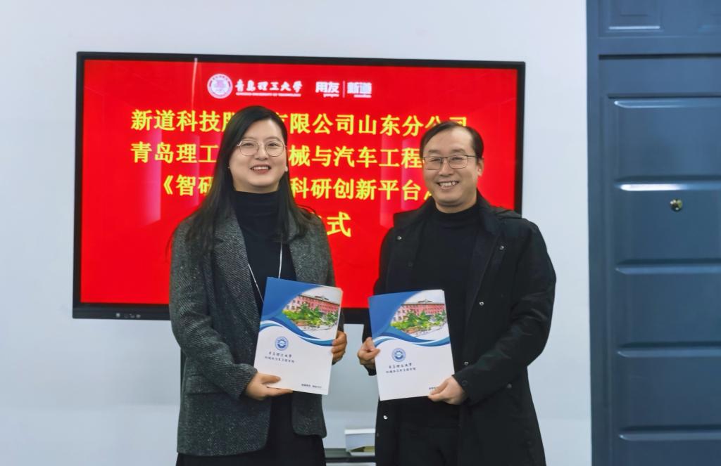 2025年12月15日,新道科技股份有限公司山东分公司(以下简称新道科技公司)向betway西汉姆联平台捐赠“智研—数智科研创新平台(DBE Cloud)”的仪式在黄岛校区汽车实验楼408会议室隆重举行。新道科技股份有限公司山东分公司青岛业务部总经理高文、项目经理王旭鹏,betway西汉姆联平台公司党委书记李忠晓,党委副书记、副经理董虎,副经理栗心明及教师代表出席会议,董虎主持捐赠仪式。