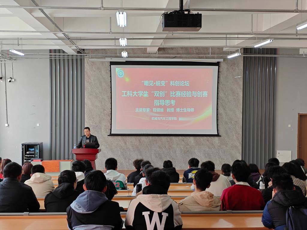 讲座现场气氛热烈,互动环节中,程教授针对同学们提出的选题来源、项目公司化运营、答辩重点等问题逐一作出细致解答。机械243班李旭扬同学表示:“本次讲座不仅帮助我们理清了挑战杯赛事的备赛逻辑,还学到了可直接应用的实战方法,为后续参赛指明了方向。”
