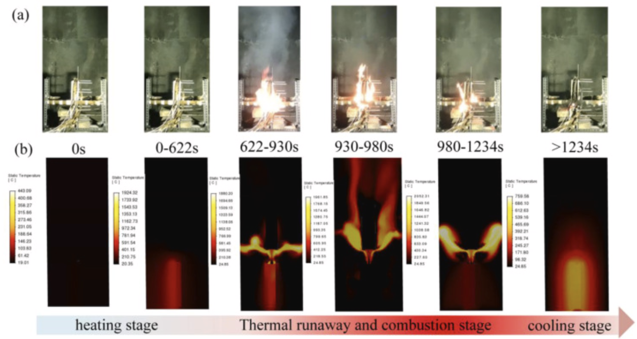 在山东省重点研发重大科技创新工程、国家自然科学基金、山东省高等公司青优创新团队等联合支持下,公司王炎副教授突破了电池安全领域火焰传播及能量传输路径仿真的技术瓶颈,首次建立了“电化学反应-射流气体扩散-燃烧不稳定性”全链条失效耦合模型,实现了从电池单体失效到系统级灾变的全过程动态模拟,仿真误差<6%,揭示了储能电站电池热失控底层顺序蔓延-上层阵群失效机制,发现了气体湍流扩散燃烧加速储能电池系统失效关键作用。