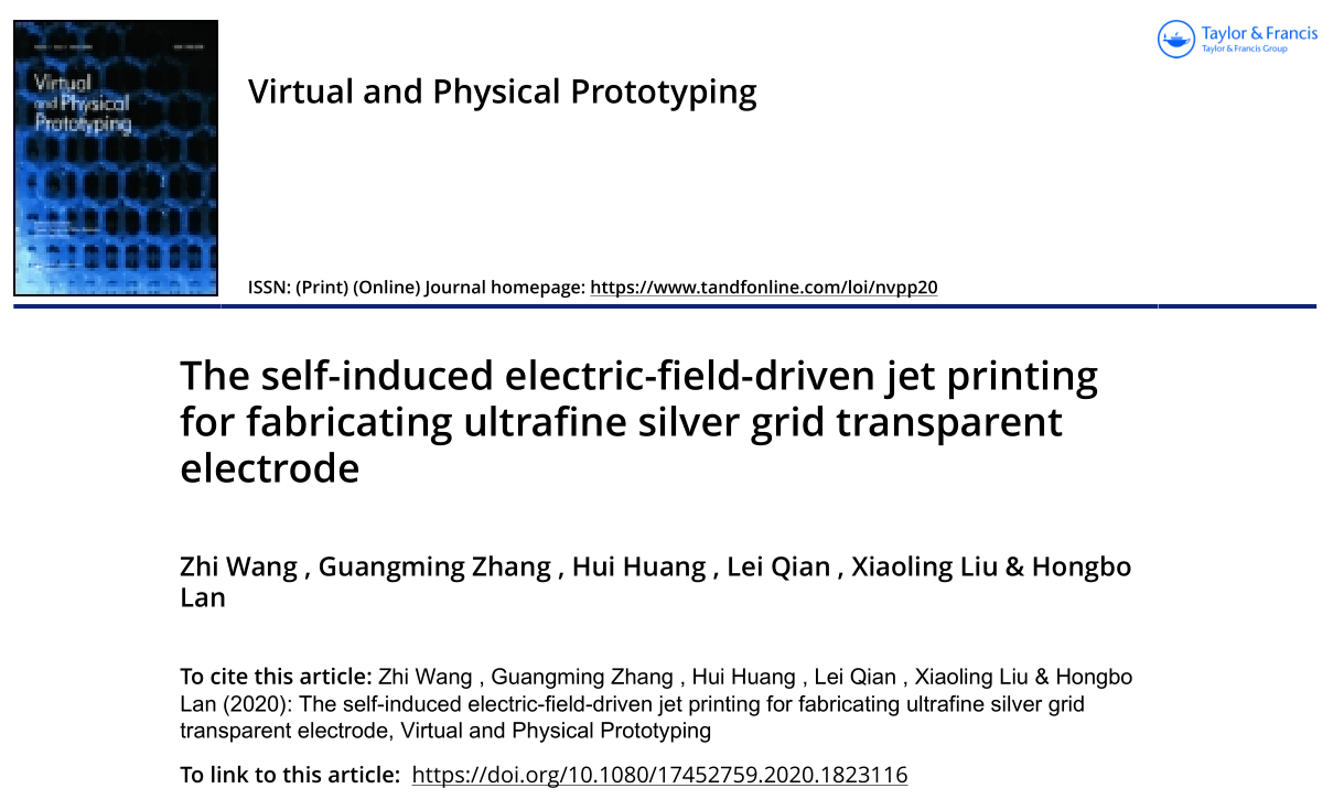 近日,betway西汉姆联平台、山东省增材制造工程技术研究中心的机械工程专业2018级研究生王智以第一作者、betway西汉姆联平台第一单位在国际权威期刊《Virtual and Physical Prototyping》发表题为《The self-induced electric-field-driven jet printing for fabricating ultrafine silver grid transparent electrode》的研究论文,指导教师为张广明副教授。